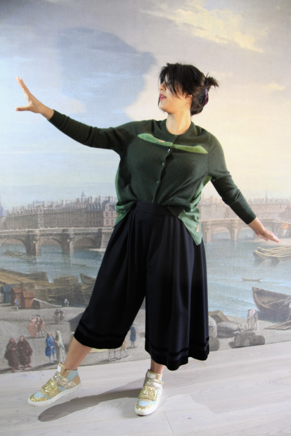 Hosen-Jupe schwarz mit Samtbänder