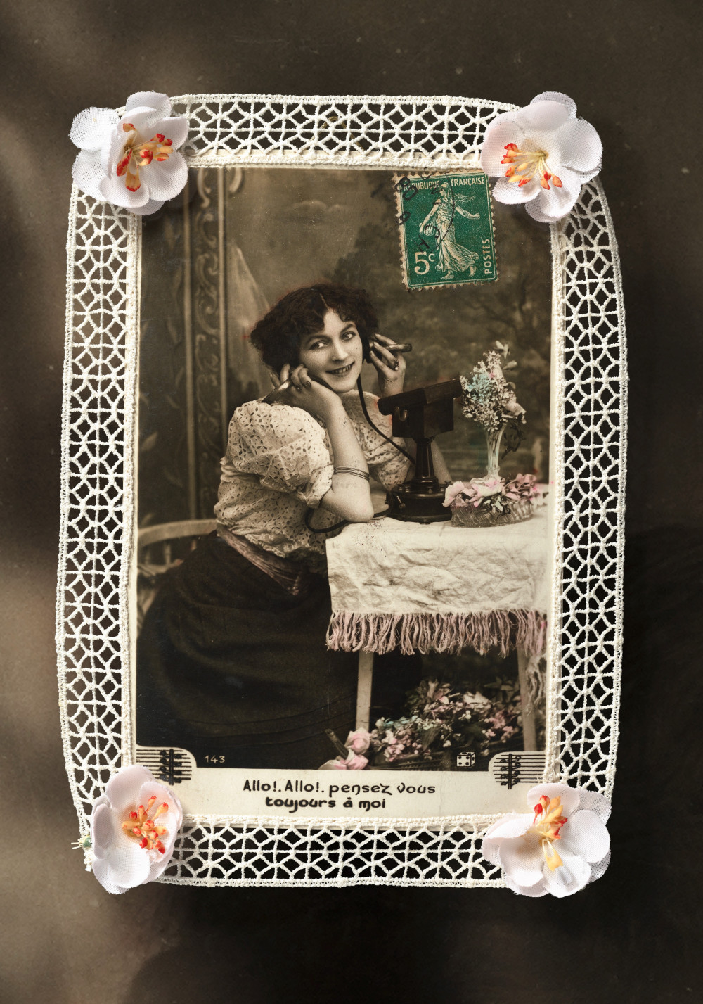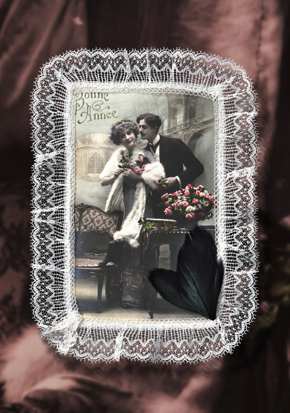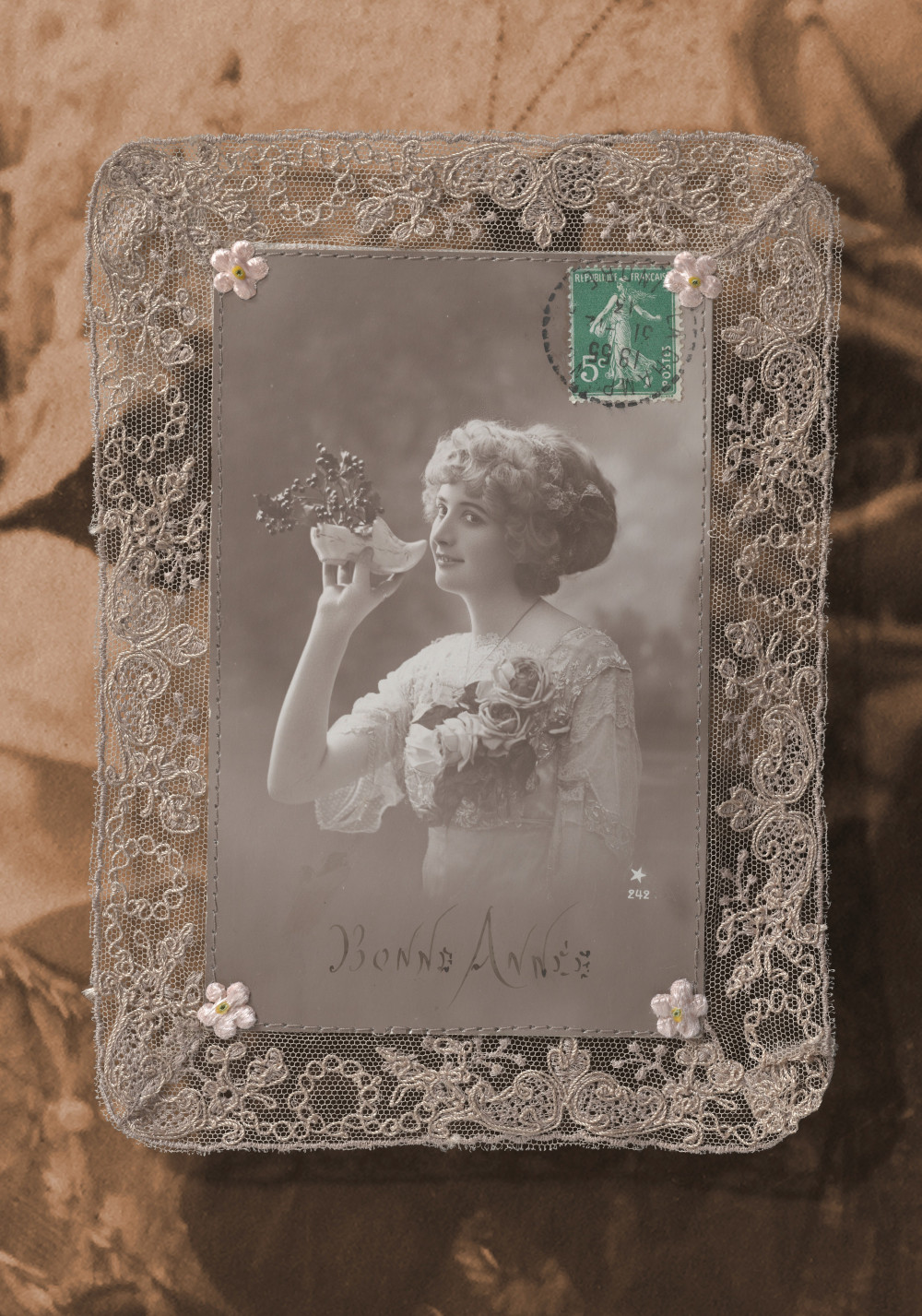 Alte Spitze mit Seidenblume