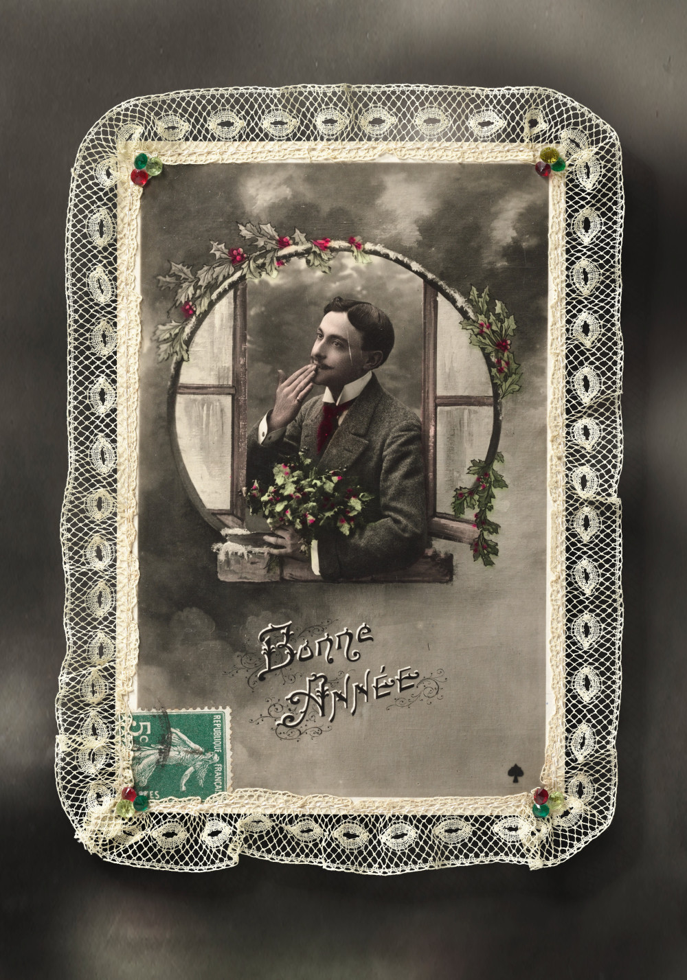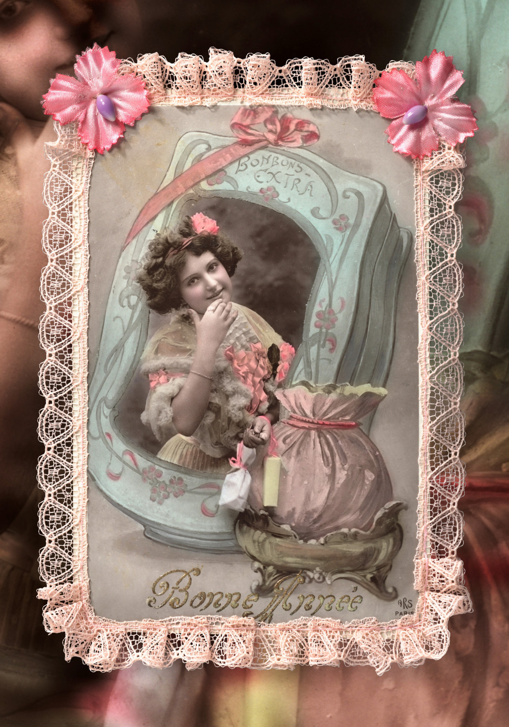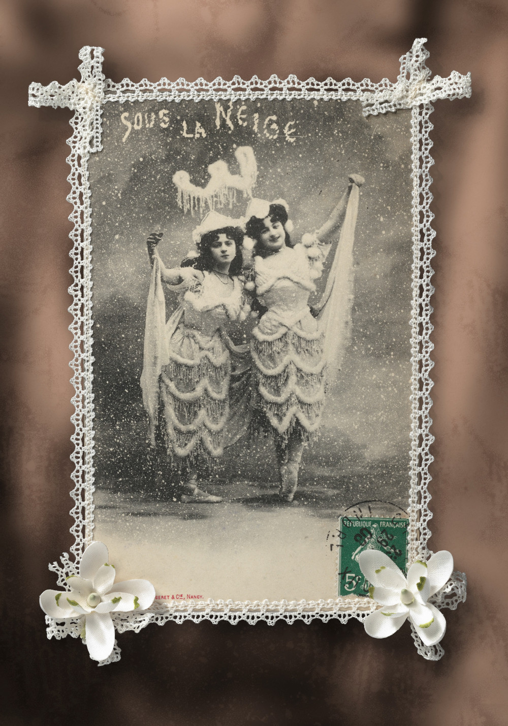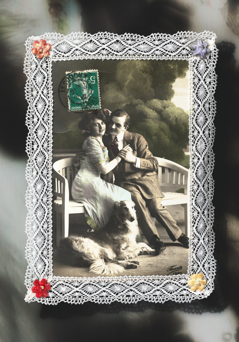 Alte Spitze mit Seidenblume