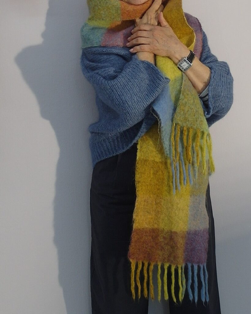 Strickjacke hellblau mit Schal