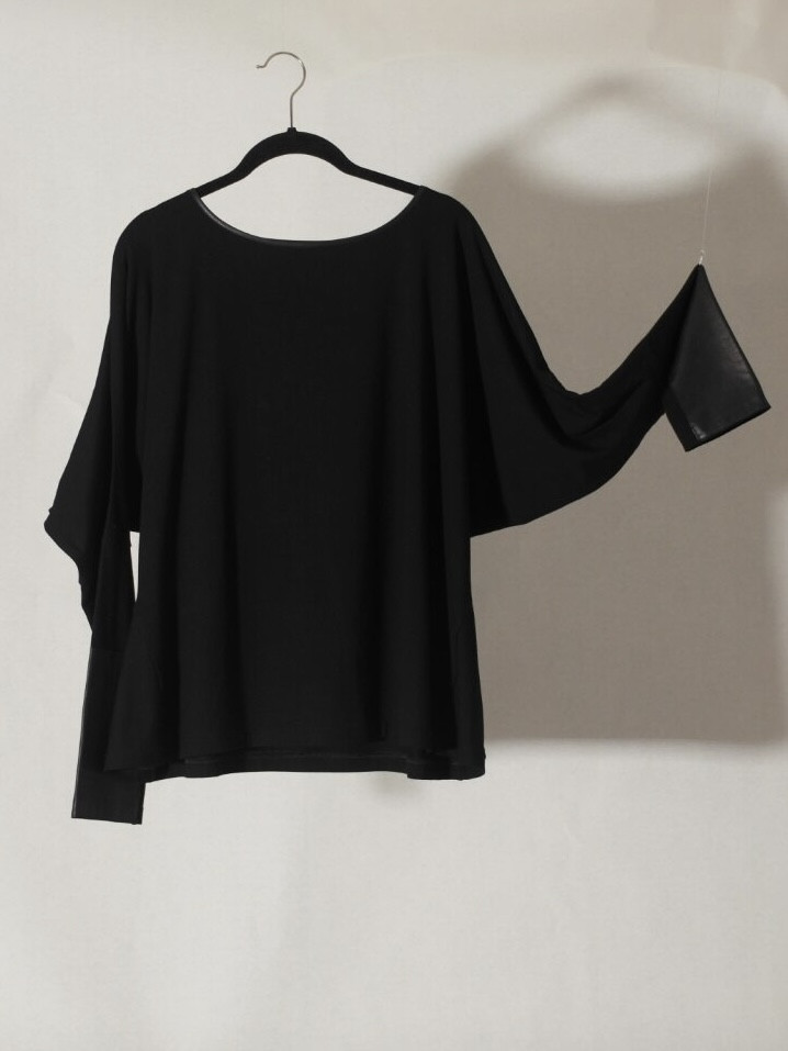 T-Shirt langarm schwarz mit Ledereinsatz